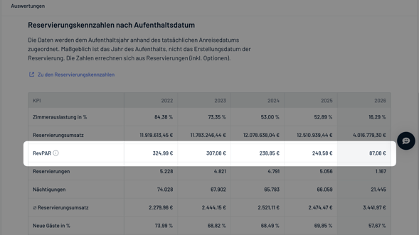 RevPAR zu den Reservations-KPIs hinzugefügt: Mit RevPAR (Revenue per Available Room) lässt sich die Umsatzperformance direkt im CRM bewerten – ohne manuelle Berechnungen.