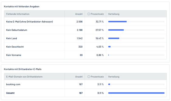 + E-Mail Qualität: Zeigt den Anteil der Kontakte mit gültiger E-Mail Adresse