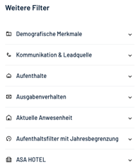 + Gästeverteilung nach Altersgruppe, Reisegruppe, Herkunftsland, Gäste-Loyalität