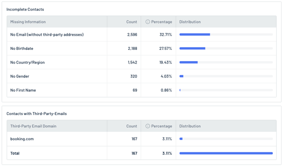 + Email Health Score: Shows the share of contacts with a valid email adress excluding third party adresses (e.g.,OTAs)
